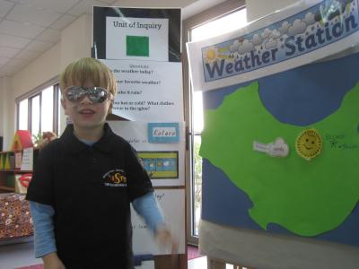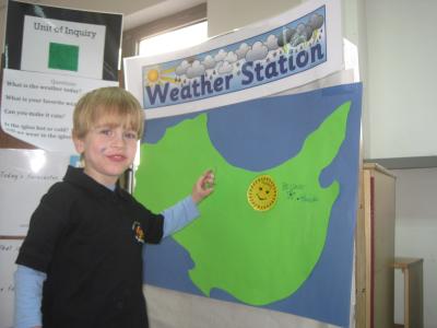 "Wetterstation". Ich wurde über die Wetterkarte, passendes Outfit für das Wetter und Wetterphänomene wie Regen oder Wind aufgeklärt.