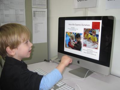 In der Computerecke gab es ein Portfolio zu sehen und Nils klickte ganz fröhlich durch die Präsentation und erklärte mir, was auf den Bildern zu sehen ist.
