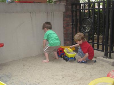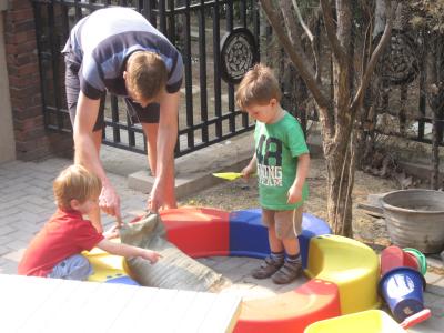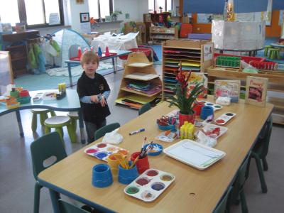 Ich wurde von Nils in seinem Kindergarten empfangen und gleich ging es los. Er zeigte mir alle verschienden "areas" und erklärte mir, was er dort macht oder machte es mir einfach vor. Er hatte einen Übersichtsplan dabei und hakte ganz ordentlich ab, welche Stationen wir schon gesehen hatten.