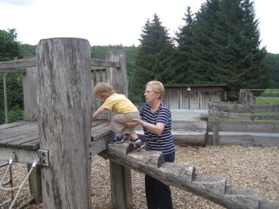 Nach einem weiteren Stopp beim Pfau und den Wildschweinen, mussten wir den Rehen "Tschuß" (Nilsisch) sagen, um den Spielplatz zu erobern. Oma Margot musste dabei ganz schön arbeiten.