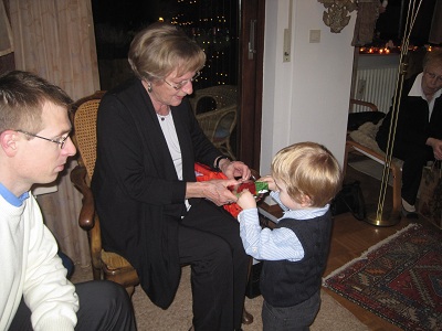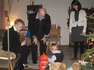 Zurück zu Weihnachten: Nachdem auch Papa alle Termine in Nürnberg erledigt hatte, konnten wir mit einem WIRKLICH vollgepackten Auto zur Großmama starten. Die hatte mal gleich die große Spielekisten für Nils bereit gemacht und vor allem die alte Playmobil-Tankstelle entwickelte sich zu Renner. Und das noch alles vor dem Heiligabend!!!