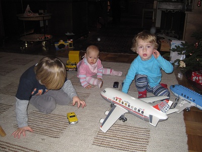 Doch oh Schreck! Robert hatte auch ein Flugzeug bekommen. Das war erstens größer und zweitens weiß (unser Kind ist leicht Lufthansagepägt). Die nächsten drei Tage wurde sich also um das Flugzeug gestritten.