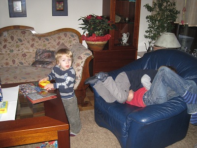 Als er dann aufwachte, war er erstmal platt: Cousins und Cousine in reicher Fülle. Da konnte und wurde das Wohnzimmer zur Spielhöhl(l)e!
