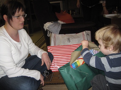 Erst mal mussten natürlich auch Geschenke ausgepackt werden, doch dieses Highlight hat Nils erst mal verschlafen. Weihnachten ist anstrengend :).