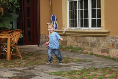 Unser Programm war recht einfach. Nils durfte um das Guesthouse herumtoben, mit dem Fahrrad selbst herum"schieben" (fahren ist noch nicht so seine Stärke) und mit Papa auf dem Bike durch die Gegend düsen.