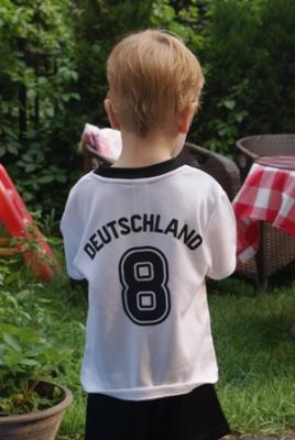 Hihi, dieses Trikot trug Nils am Nachmittag vor dem Spiel Deutschland - Dänemark bei der EM. Großmama hatte in ihrem großen Koffer das entsprechende EM-Equipment importiert und somit konnte Nils ganz klar Stellung beziehen.