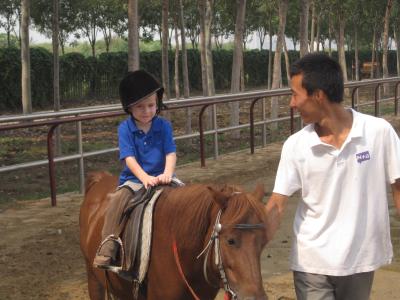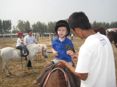 Wie schon bei den letzten Besuchen zeigte Nils keinerlei Brührungsängste mit den Pferden und wollte unbedingt reiten.