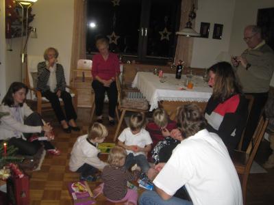 Erst wurden mit den Großeltern und Großmama begeistert Weihnachtslieder gesungen und dann gab es Geschenke.