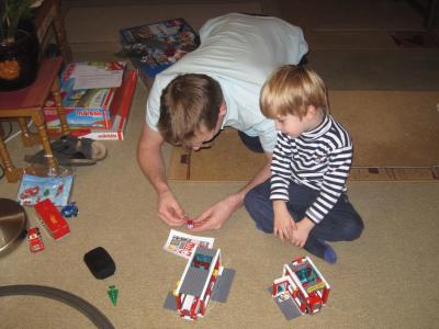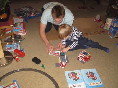 Nils bekam sein zweites Weihnachtshighlight und freute sich riesig über die Feuerwehrstation.