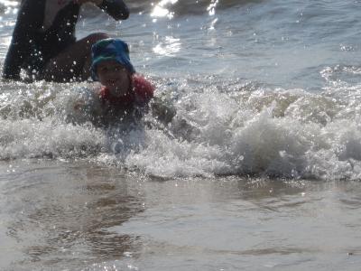 Später am Strand rennen und buddeln, um sich dann in den Wellen abzukühlen.