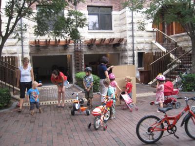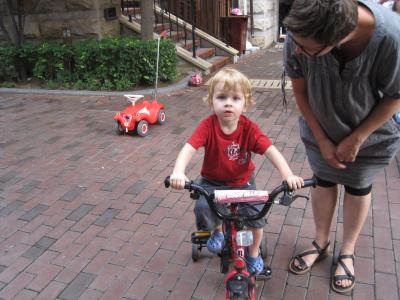 Da kann man dann auch mal das Fahrrad der großen Freunde ausprobieren. Das war dann aber doch noch etwas wacklig.