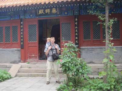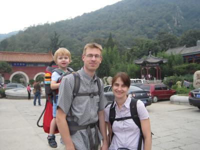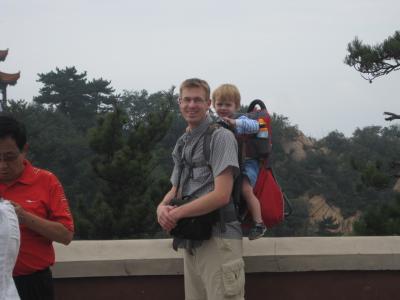 Nils genoss den Aufstieg zur Pagode und zum Kloster aus der Kraxe und fand das klasse.