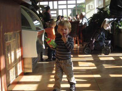 Es wurde ein meist recht entspannter Sonntagmorgen und - mittag und vor allem unsere 13 (!!!!) kleinen Gäste von 1-6 Jahren kamen voll auf ihre Kosten. Im Land der Kinderfreundlichkeit war es natürlich keine Frage, dass wir ein Kindereck einrichten und die Zwerge sich ausbreiten durften.