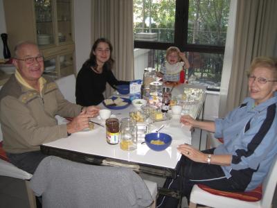 Also haben wir alle zu unserem "Lieblingsaustralier" zum Brunch eingeladen. Ich glaube der Inhaber des Restaurants war sich nicht ganz bewusst, was da auf ihn zukam. Über die Zusammenstellung eines Brunches (Marmelade, Nutella und Leberkäse) zeigte er sich dann doch etwas verwundert.