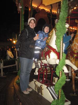 Nils fand die Kinderweihnacht wunderschön und war ganz verzaubert von den schönen Figuren auf den Budendächern.