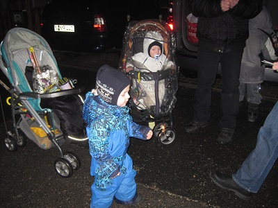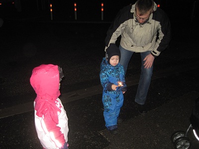 Also gab es eine "Knallerei light" mit den Kindern, wobei Nils die Wunderkerzen erst mal sehr suspekt waren. Später hat er sie dann begeistert in der Gegend herum gewedelt.
