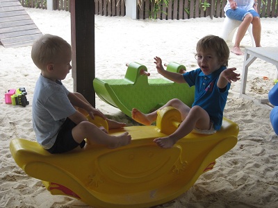 ...mit seinem Kindergartenkumpel Finn, dessen Eltern das gleiche Hotel gebucht hatten, ohne dass wir voneinander wussten. Ein großer deutscher Reiseanbieter mit Familienhotels im Angebot macht es möglich ;).