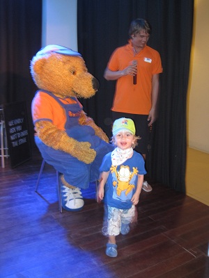 Familienhotel bedeutet natürlich auch Familienentertainment. Wann geht es Mama und Papa am besten? Richtig! Wenn das Kind gut unterhalten ist. Diesen Part übernahmen Giraffe Lollo und Bär Bernie.