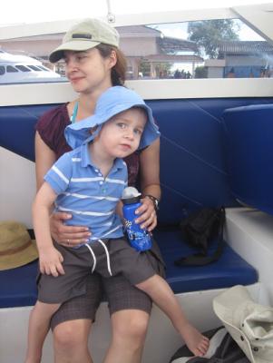 Dort sind wir dann auf ein Boot umgestiegen. Nils fand das natürlich hochspanndend.