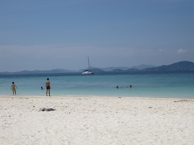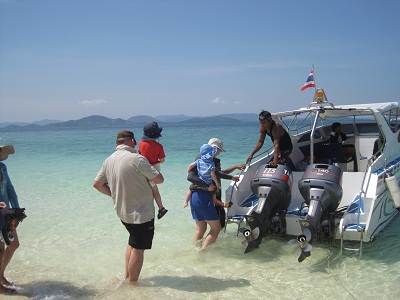 Irgendwann hat er dann sein zweites Frühstück verdrückt, was bei dem Wellengang definitiv KEINE gute Idee war. Nachdem das Frühstück auch postwendend wieder zurückkam, haben wir uns zu einem Stopp auf einer der kleineren Inseln vor Phuket entschieden.
