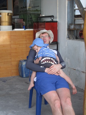 Nils wurde dann auch wirklich auf dem Flug krank. Naja, es gibt bessere Momente dafür. Aber nach 2 Tagen in Thailand war er wieder recht fit.