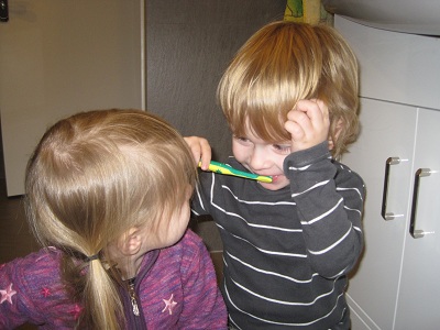 ... kontrolliert, ob er seine Zähne auch richtig putzt...