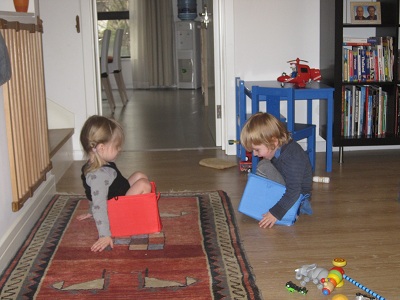 Wenn sie nachmittags aus dem Kindergarten abgeholt werden, ist es nahezu unmöglich, sie in unterschiedliche Häuser/Gärten einzusortieren. Die beiden Zwerge beschließen schon auf dem Heimweg, wo heute gespielt wird. Und wehe das ist mal nicht möglich... da gibt es großes Geschrei.