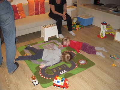 und dann gemeinschaftlich und sehr müde auf dem Spieleteppich zusammenbrechen.