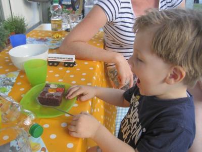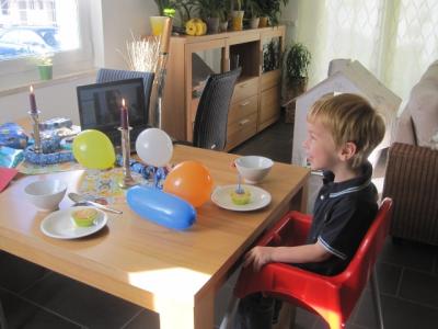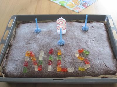 Als dann am Nachmittag Nils Freunde kamen, wurde erst mal der gewünschte Schokokuchen und die Muffins serviert. Natürlich musste Nils zuvor alle Kerzen auspusten.