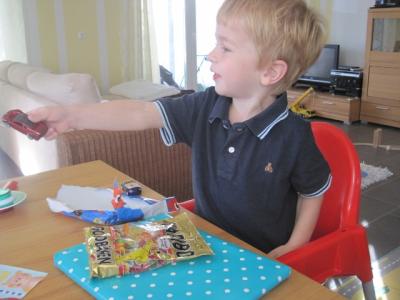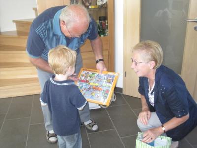 Und schon standen die ersten Gratulanten vor der Türe. Erst kamen die Webers und dann die Großeltern. Nils war hellauf begeistert von den Geschenken und war viel zu aufgeregt, um einen Mittagsschlaf vor der Party zu machen.
