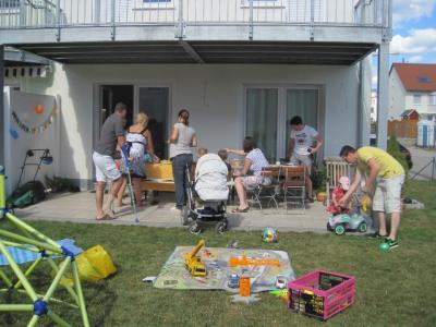 Danach wurden alle Spielsachen in den Garten geschleppt und Eltern, Kind und Kegel haben sich gut unterhalten.