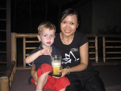 Jeden Abend düsten wir mit dem Shuttlebus in die Stadt, eine Fahrt die besonders Nils großen Spaß machte. Dort gab es dan ein leckeres Abendessen, wir finden vietnamesisches Essen sehr lecker. Nils fand vor allem die frischgepressten Fruchtsäfte toll.