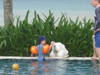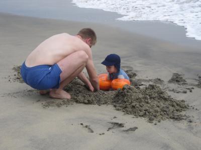 Wir genossen unser Hotel direkt am Strand. Nils buddelte wie immer wie ein Weltmeister und wagte sich diesmal mit Papa auch in die zum Teil richtig hohen Wellen. Die Regenzeit und ein Taifun auf den Phillipinen machten das Wetter häufig mal regnerisch und windig, aber irgendetwas fiel uns immer ein.