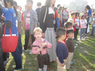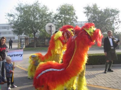 Alle Kinder trugen Kleidung, die typisch für ihre Herkunftsländer waren. Zunächst gab es eine große Parade aller 500 Schüler auf dem Schulgelände. Sogar ein Liondance war wieder dabei, sehr zur Freude von Nils.
