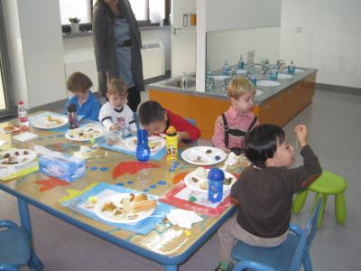 Dann wurde alles gemeinsam verspeist und die Kombinationen auf den Tellern der Kinder waren "speziell". Sushi mit chinesischen Dumplings, koreanische Fischspießchen und Schokokuchen waren da auf dem Teller nebeneinander zu finden.